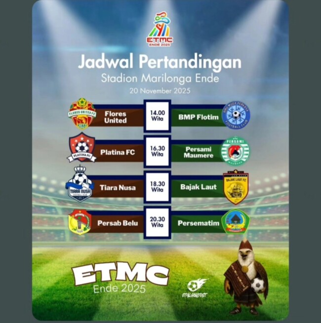 Seluruh laga babak penyisihan dapat disaksikan langsung di Stadion Marilonga Ende atau melalui live streaming YouTube di kanal: Tiwu Telu Media, Milenial Spirit dan Bidora Channel.***