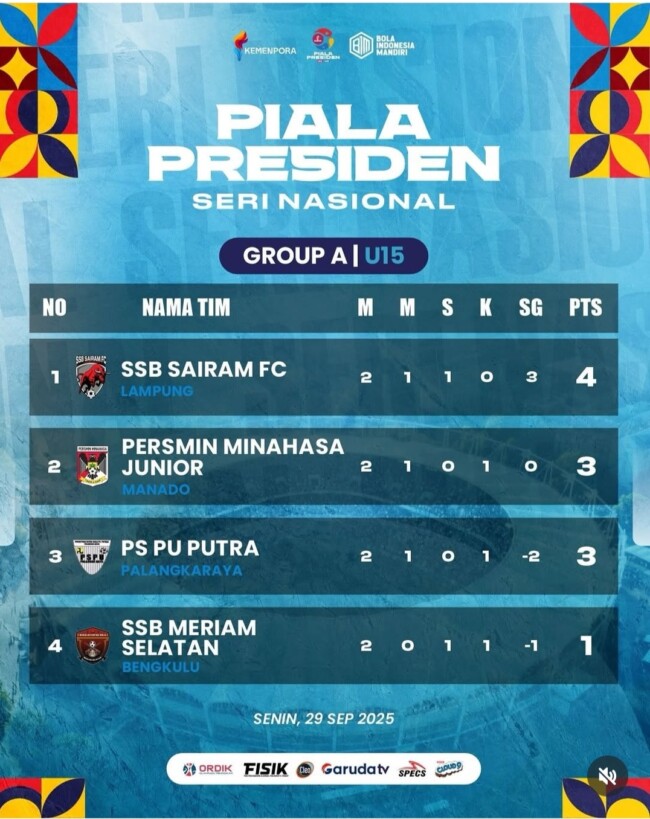 Sementara itu, SSB Meriam Selatan baru mampu mengantongi satu poin dan wajib menang di laga terakhir jika ingin menjaga peluang lolos.