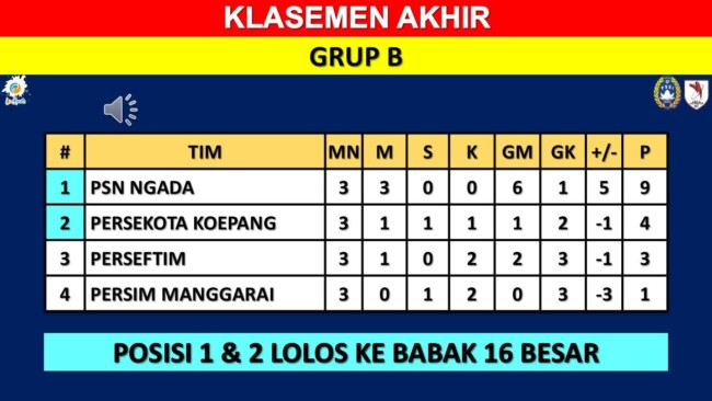 Sementara Persim Manggarai berada di posisi juru kunci dengan 1 poin, hasil dari satu kali imbang.